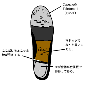 | マイケルさまの履いている靴。白いヒールはおそらくファイバー積層を、アルミ系の金属でおおったものです。 |